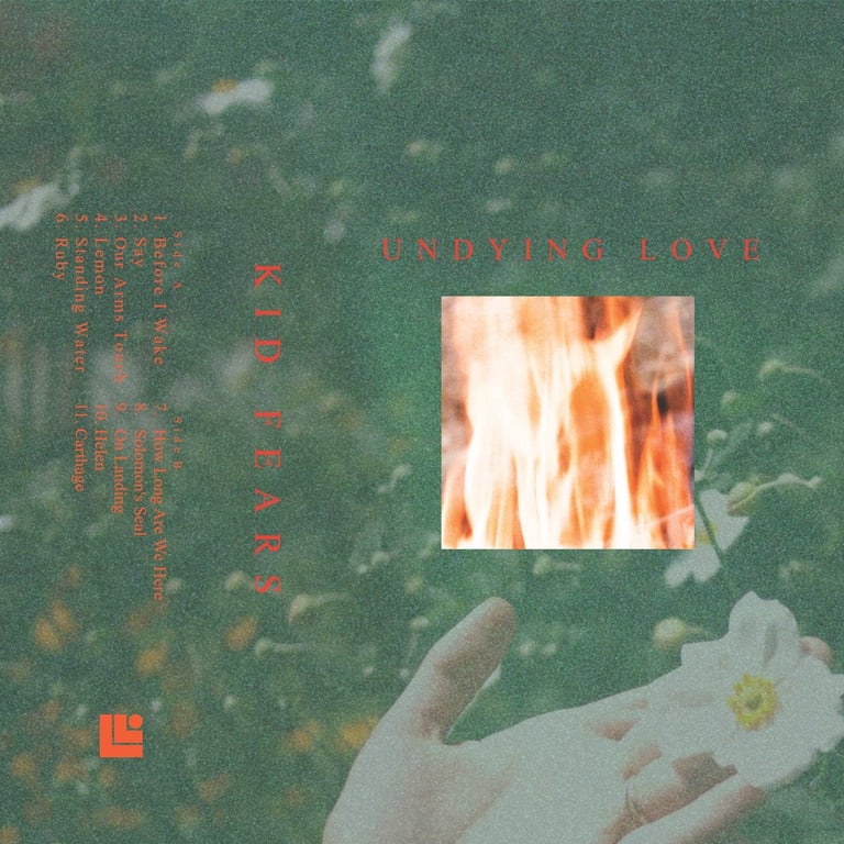 The debut LP "Undying Love" by Kid Fears on cassette. Art Design by Ben Ewing & Rose Ewing. Limited to 15/35 copies split with band.
